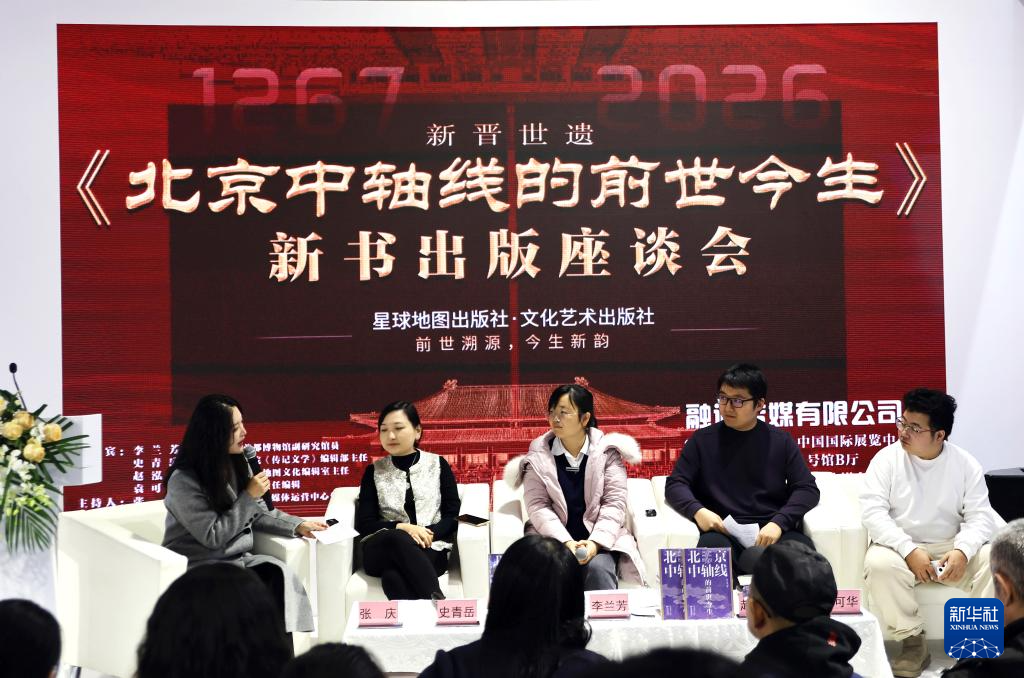 1月8日,嘉宾在《北京中轴线的前世今生》新书出版座谈会上交流。
