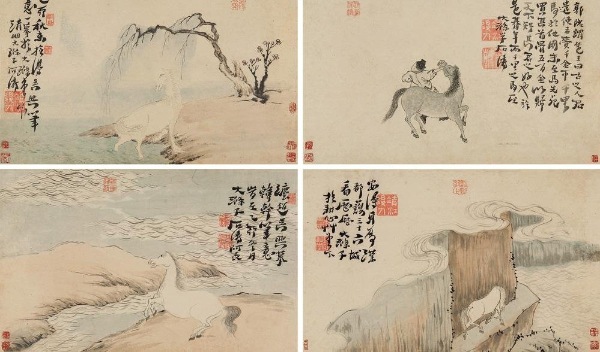 清代:石涛《骏马图》四幅
