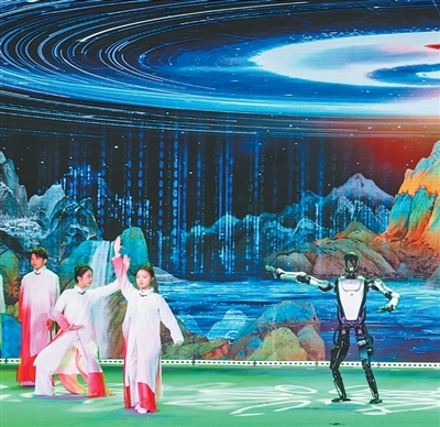 “AI西安之夜”活动上,机器人“夸父”与学生们同台表演。 |