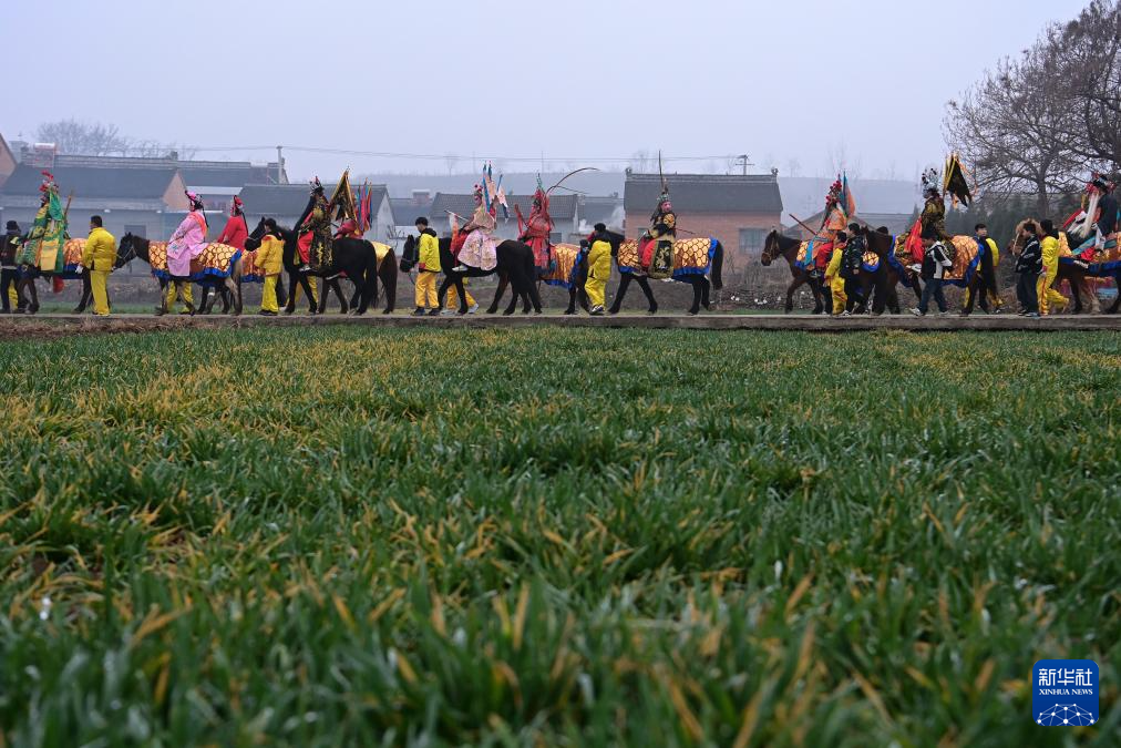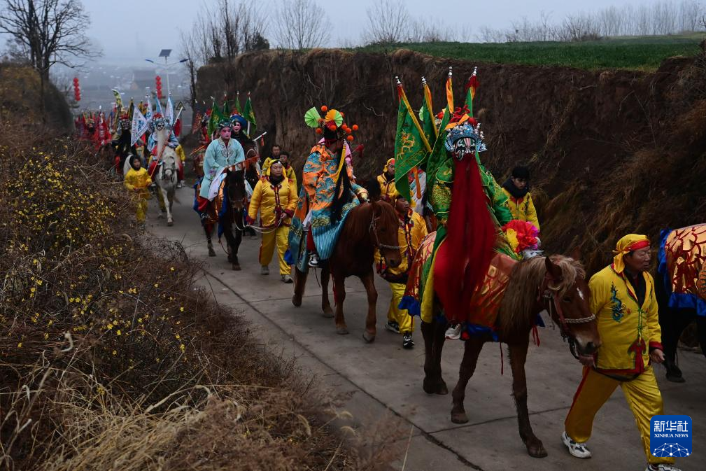 3月2日,陇县黄花峪村社火队在游演途中。