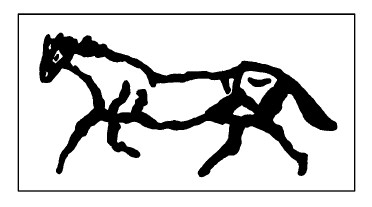 马的形象最早作为绘画形式的出现大约要属岩画了。狩猎图中的形象虽然过于简单稚拙,然而却抓住了马的本质特征,头、颈、胸、腹背、臀、四肢基本合乎马体的比例,由此可见古代先民在观察马和表现马方面已具有一定的水平了。